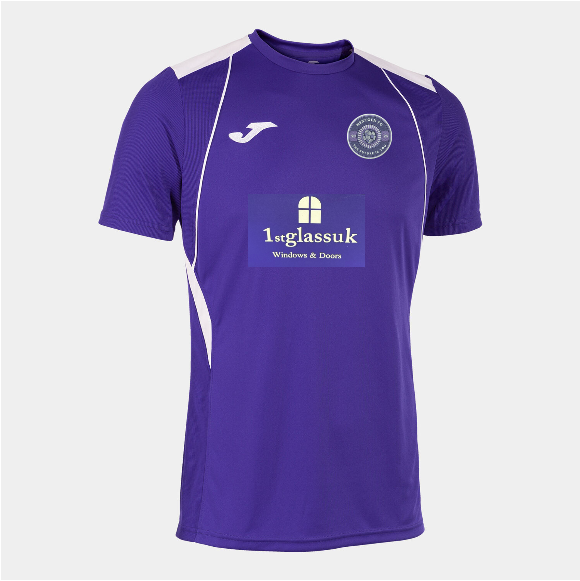 Purple Joma Champ VII with embroidered club badge and the following printed sponsor logos: